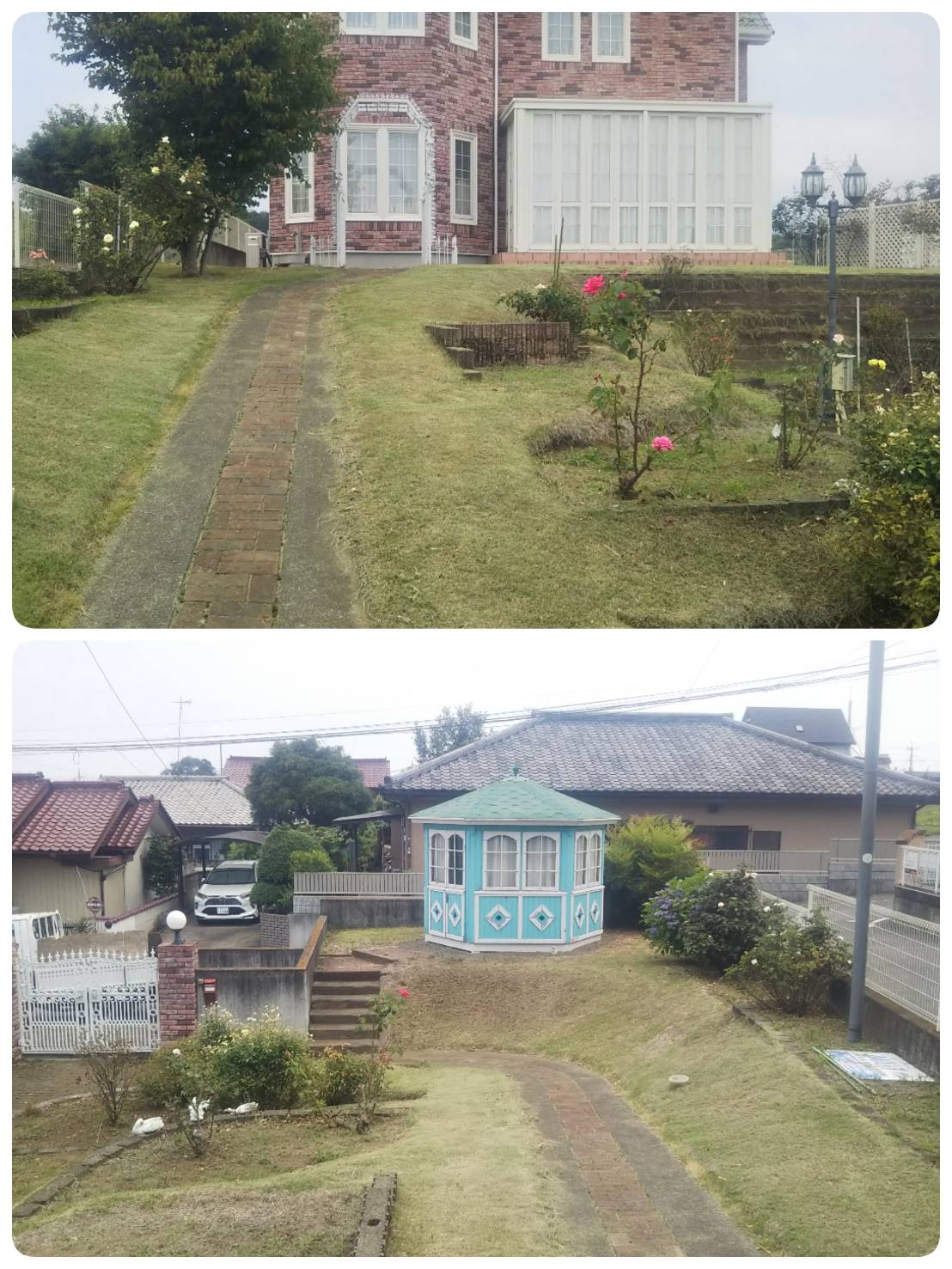 芝地に長い雑草等生えてしまっていても問題ありません。状況にあわせて綺麗にさせて頂きます。