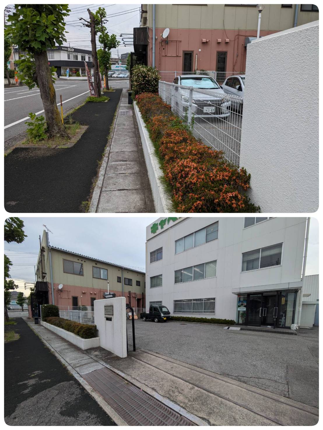 今回は定期的にご相談を頂く製薬会社さまからのご相談で、生垣の隙間から生える雑草の草むしりや境界線沿いのフェンスに絡むつる草取り、一部植木の剪定の作業をさせて頂きました。
