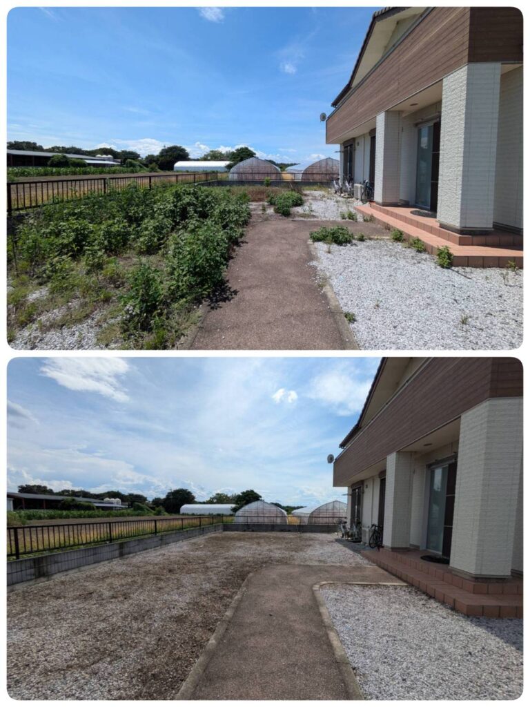 近隣は田畑ということもあり、種が飛んできて雑草の生えやすい環境になってしまったとのことです。
