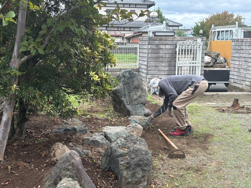 庭石は必要なものと不要なものを分別して綺麗に配置し、敷石などは撤去することになりました。