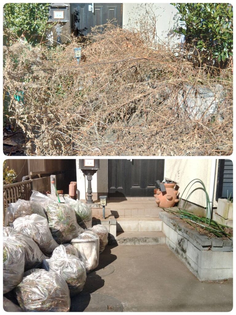 毎年年末のお掃除でお伺いするお客さま宅ですが、1年経過するだけで苔や埃などの汚れが蓄積されているのが良く分かります。