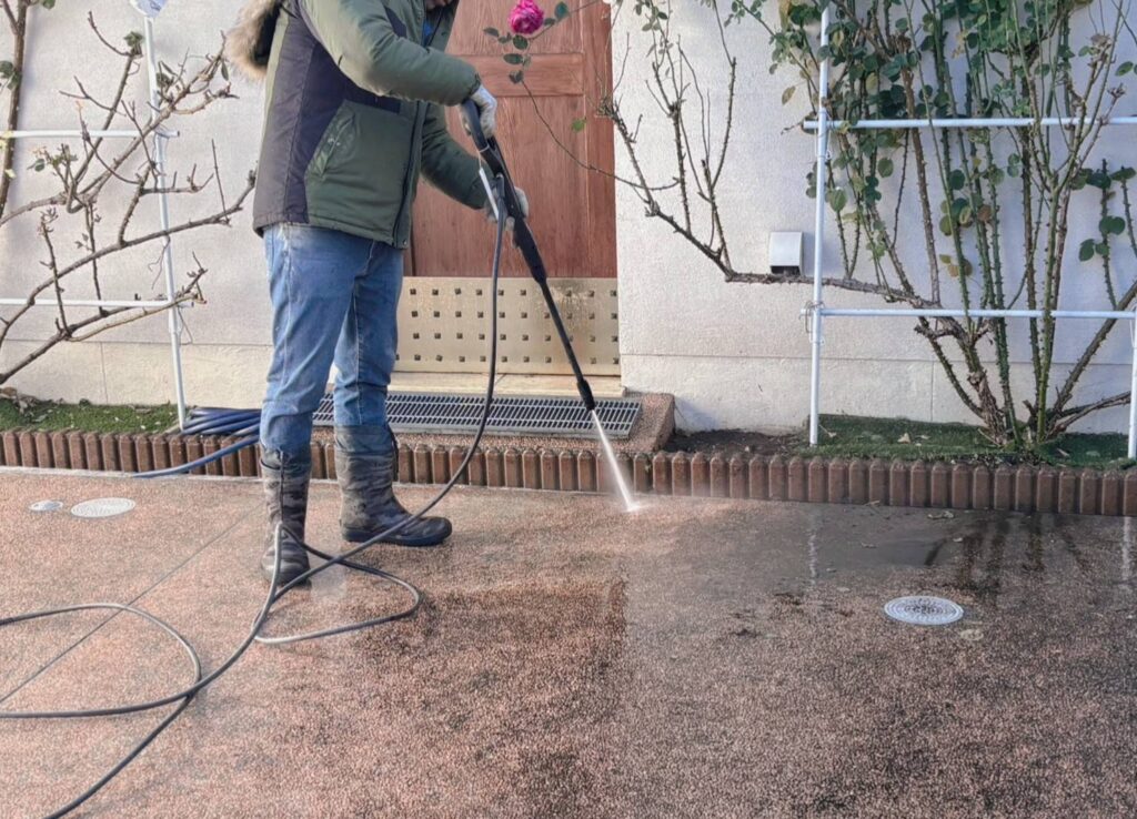 高圧洗浄機を使用したことで地面が明るくなりました。