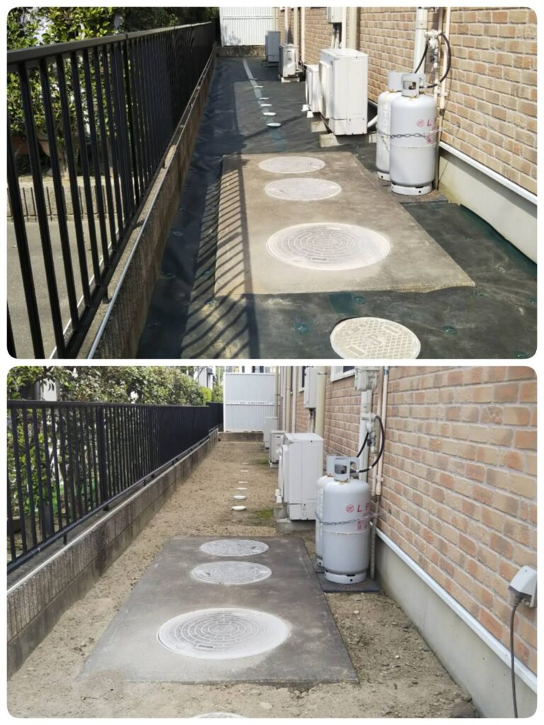 機械が使用できない場所でも植物は育ててない・・・。などの状況も多く、その際は作業後にアフターケア(雑草対策)のご案内もしております。